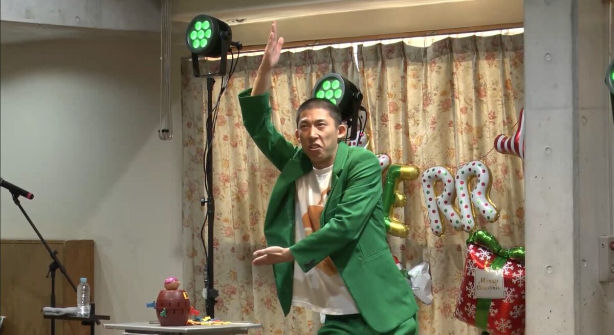 クリスマス会は二部制で行われ、第一部では、亀田製菓株式会社さんによるワークショップを行い、第二部ではお笑いタレント兼ミュージシャンのはなわさん、お笑い芸人のチャパティさんMCには鈴木奈々さ、お笑い芸人のどんぐりたけしさんをゲストでお迎えし、スペシャルライブステージを開催しました。